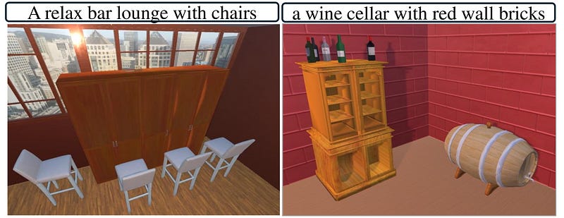While LLMs expand scene diversity by leveraging common-sense knowledge from text, their lack of visual perception prevents accurate reproduction of real-world spatial relations. As shown in Figure 2, LLM-generated scenes often misorient objects (chairs facing cabinets instead of tables) and misplace them (cabinets against windows). Small objects are restricted to predefined locations (only on top of furniture rather than inside). This lack of realism disrupts object functionality and spatial coherence, making the scenes impractical for real-world usability.